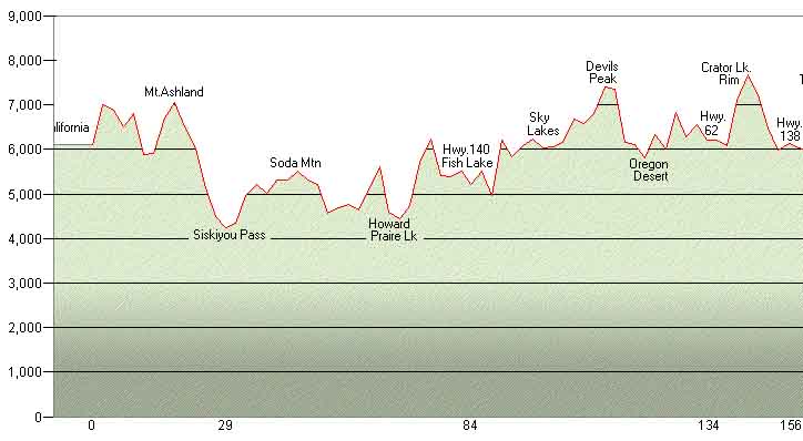 Here is a look at the elevational changes that Darrell will make this week as he proceeds from Ashland to Crater Lake.