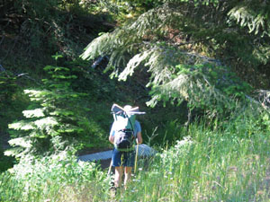 Darrell called on Friday (the 5th) from White Pass. He's doing quite well now, although he reported to me that mid-week he was in a great deal of pain (in his legs) and even considered quitting. But he chose to "tough it out" and with careful stretches he seems to have conquered the leg soreness ... for now. Keep your fingers crossed for him!