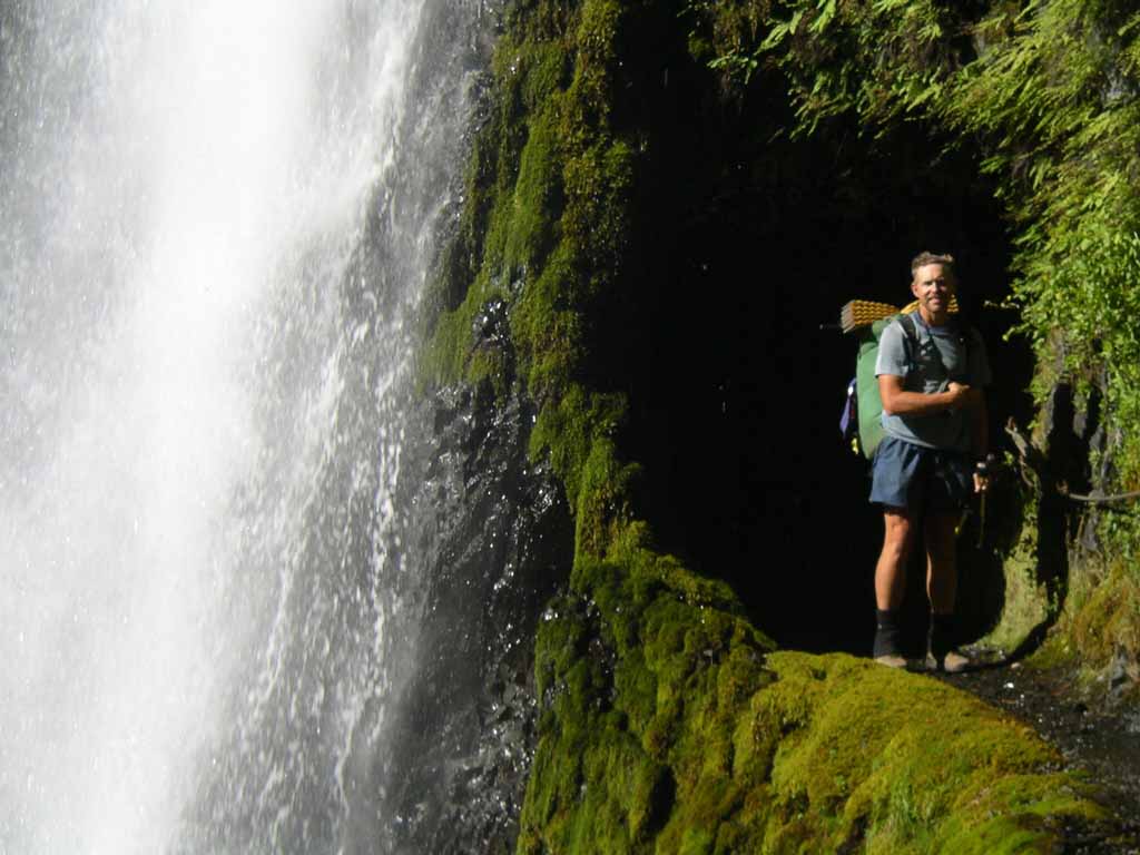 Here he is about to step behind the waterfall.